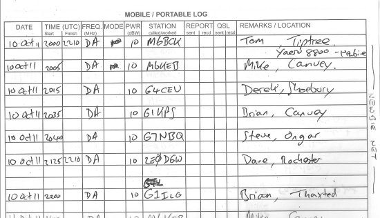 Today’s nets are managed using a paper rotation sheet, then logged electronically and uploaded to the site together with notes and subjects. When it all started, the net was logged in Pete M0PSX’s “Mobile Logbook”, and here’s a scan of the first official Monday Night Net