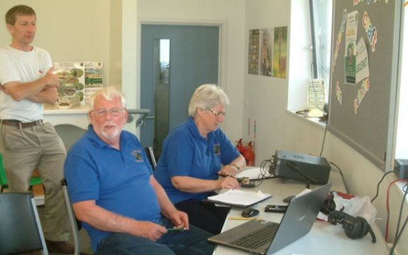 The following picture shows two club members: Stella G0EKP sending Morse to a station located overseas, with Chris G0EKN supporting her keeping the log. Peter G4FQF is keeping watch in the background.