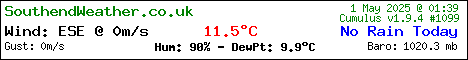 The following information comes from the amateur weather station operated by Essex Ham Pete M0PSX, in Leigh-on-Sea: